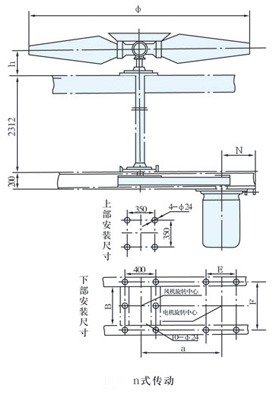 适用于2.4-3.6米风机,吊挂式、引风式,安装尺寸见表
