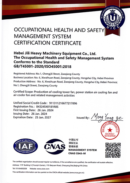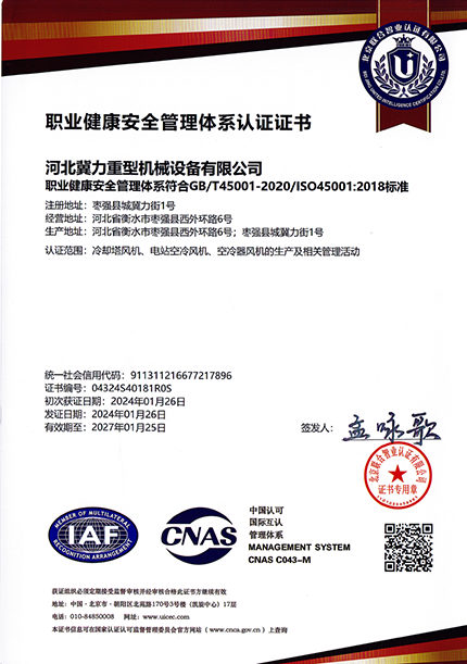 职业健康安全管理体系认证证书